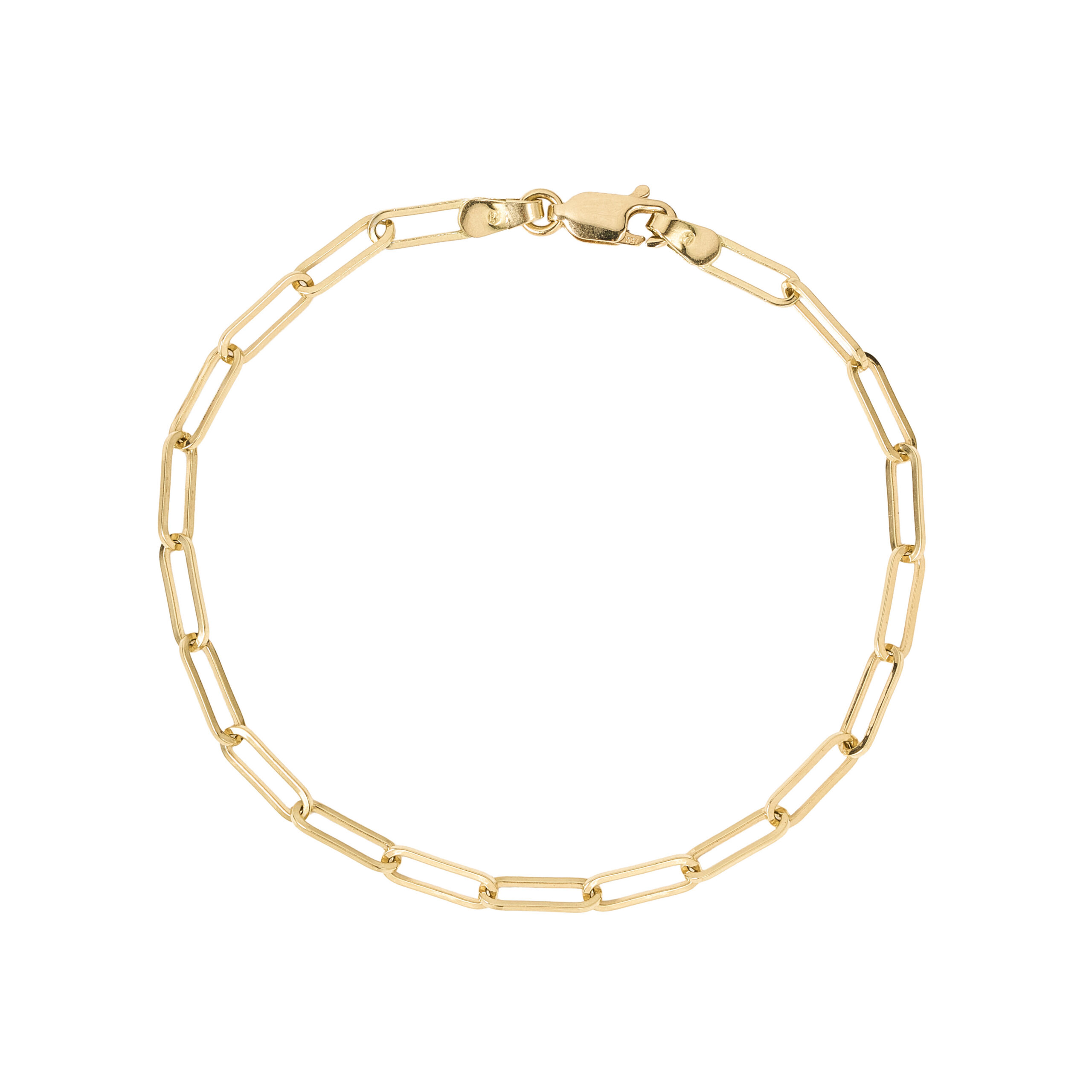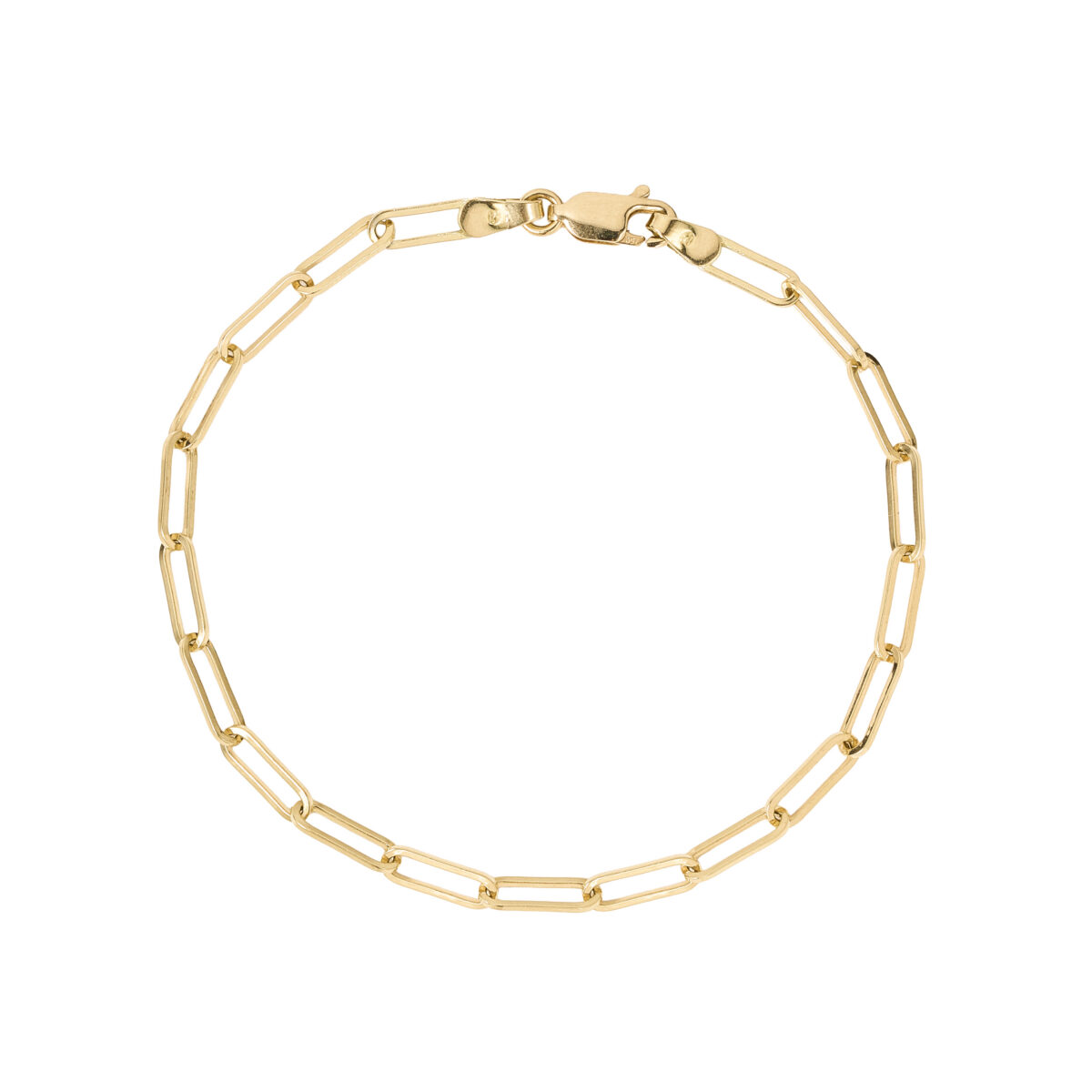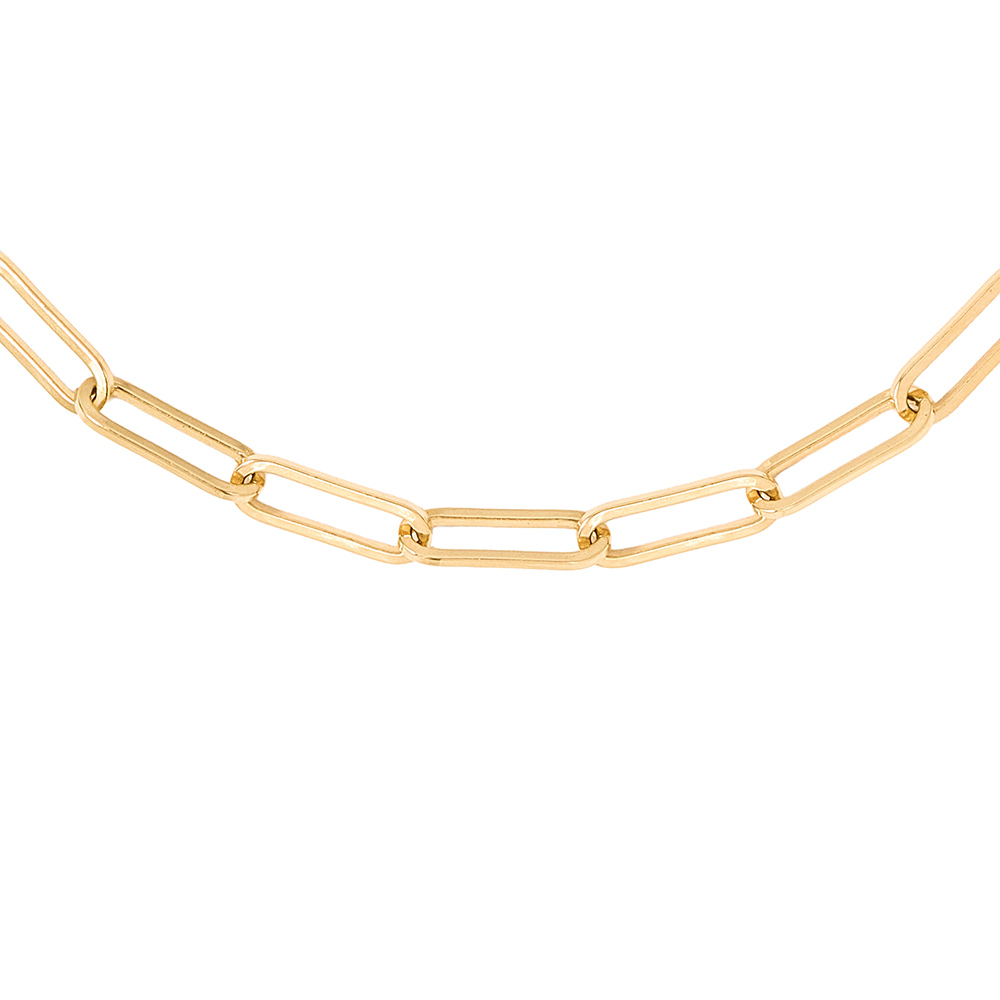 Pulsera de oro amarillo 18k con diseño de eslabones chicos paper clip con cierre de mosquetón. Largo 19cm.