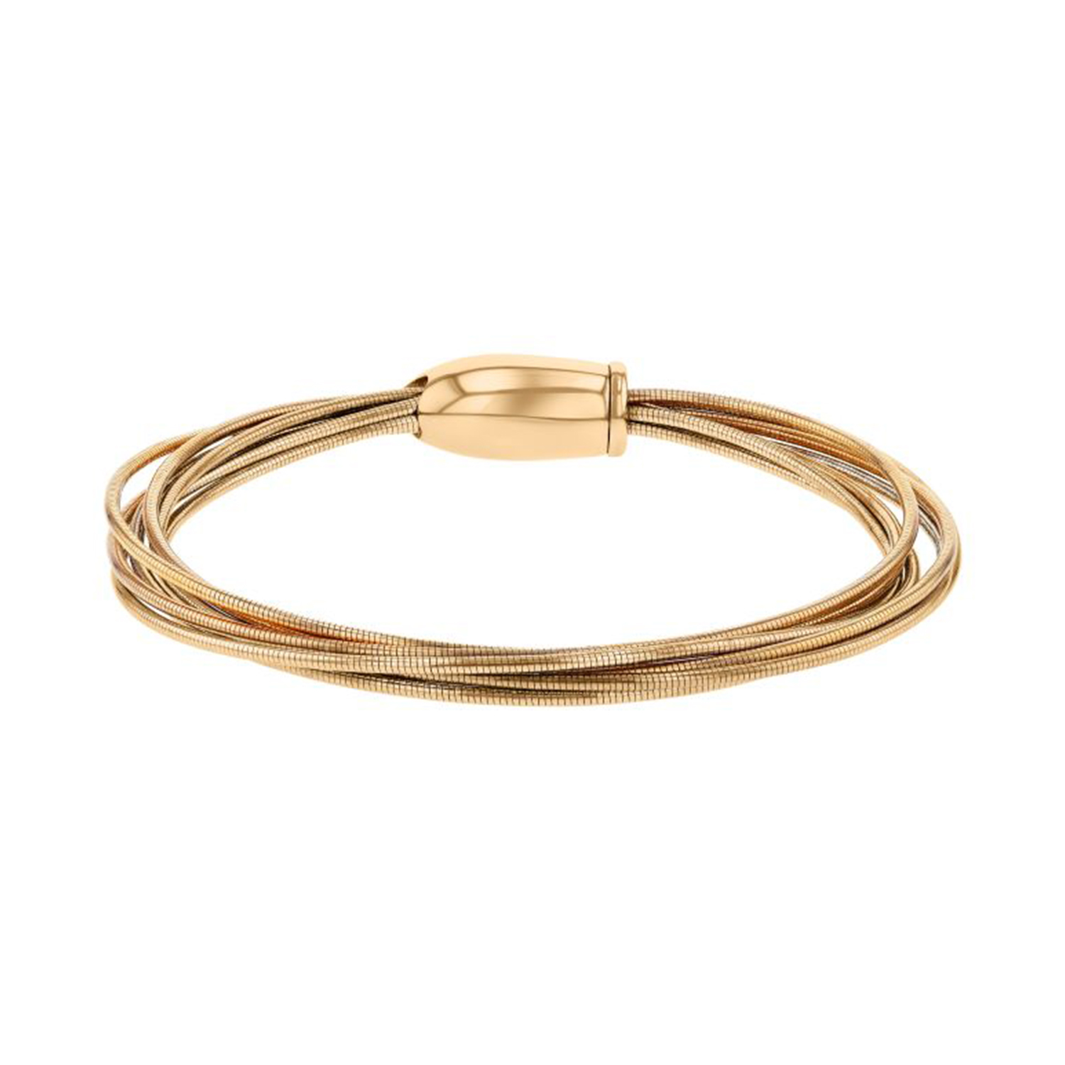 Pulsera PESAVENTO de plata esterlina con recubrimiento de oro amarillo 18k con diseño de Hebras de plata múltiples con un acabado elegante. Cierre de iman.