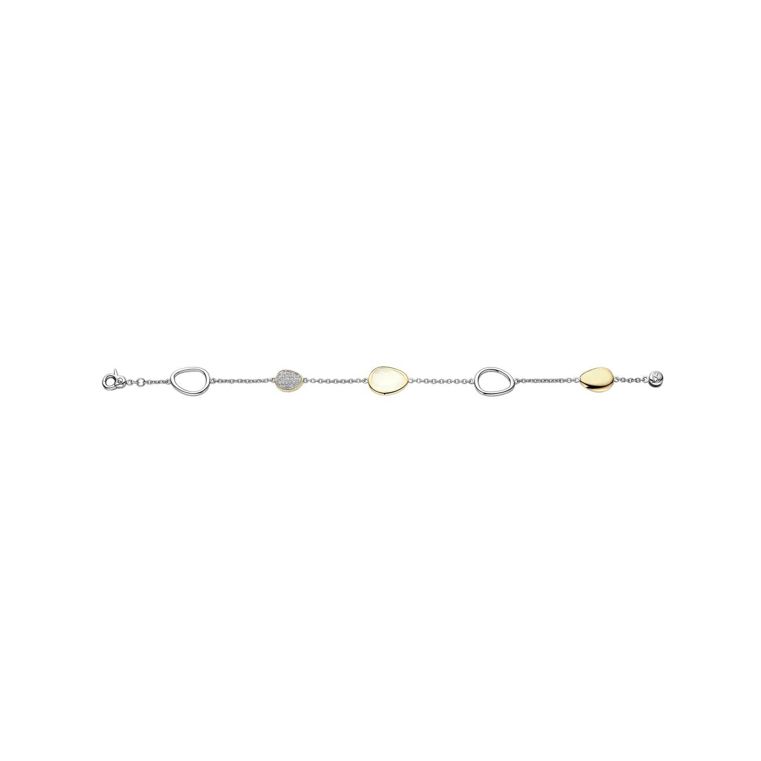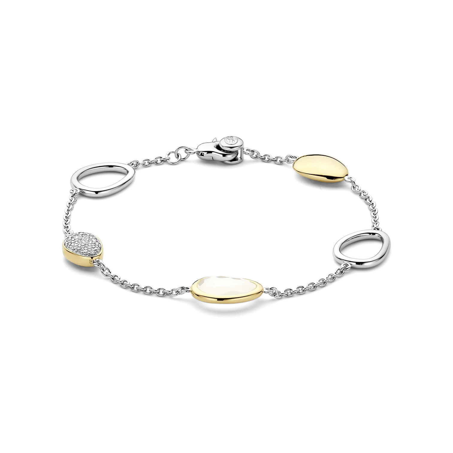 Pulsera TI SENTO modelo 23083mw de plata esterlina con recubrimiento de platino y oro amarillo 18k con eslabones abstractos. Largo 19cm.