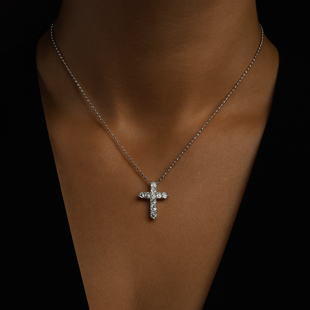 Collar con cruz mini Oro blanco 18k $1.245.000 El precio original era: $1.245.000.$933.750El precio actual es: $933.750.