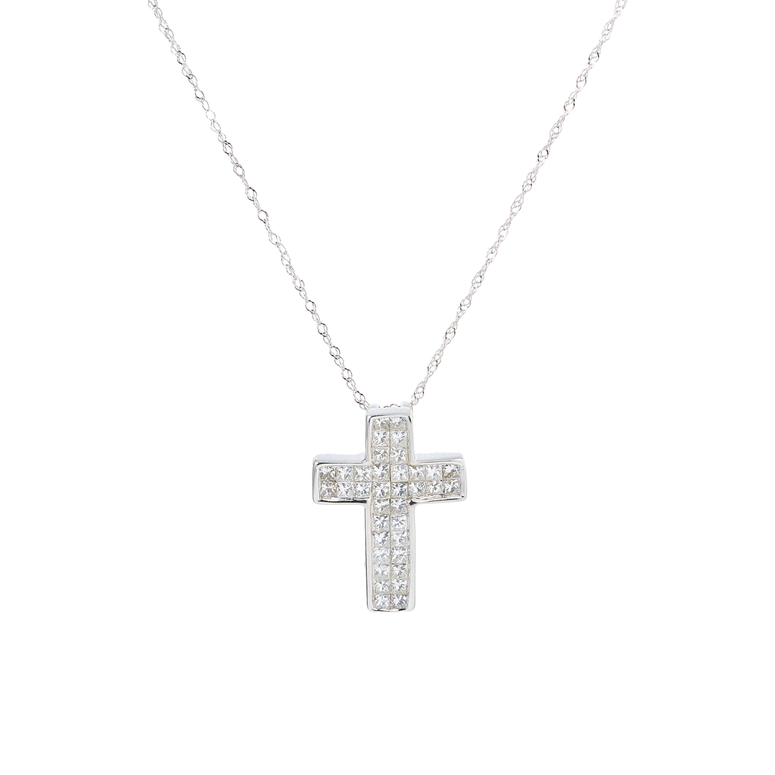 Collar de Platino con cadena de eslabones y una cruz de diamantes corte princess de 20mmx 15mm, en total 0.70ct. Largo 45cm
