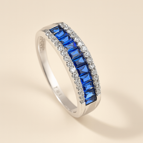 Anillo medio cintillo Zafiros en Baguette. Talla 18